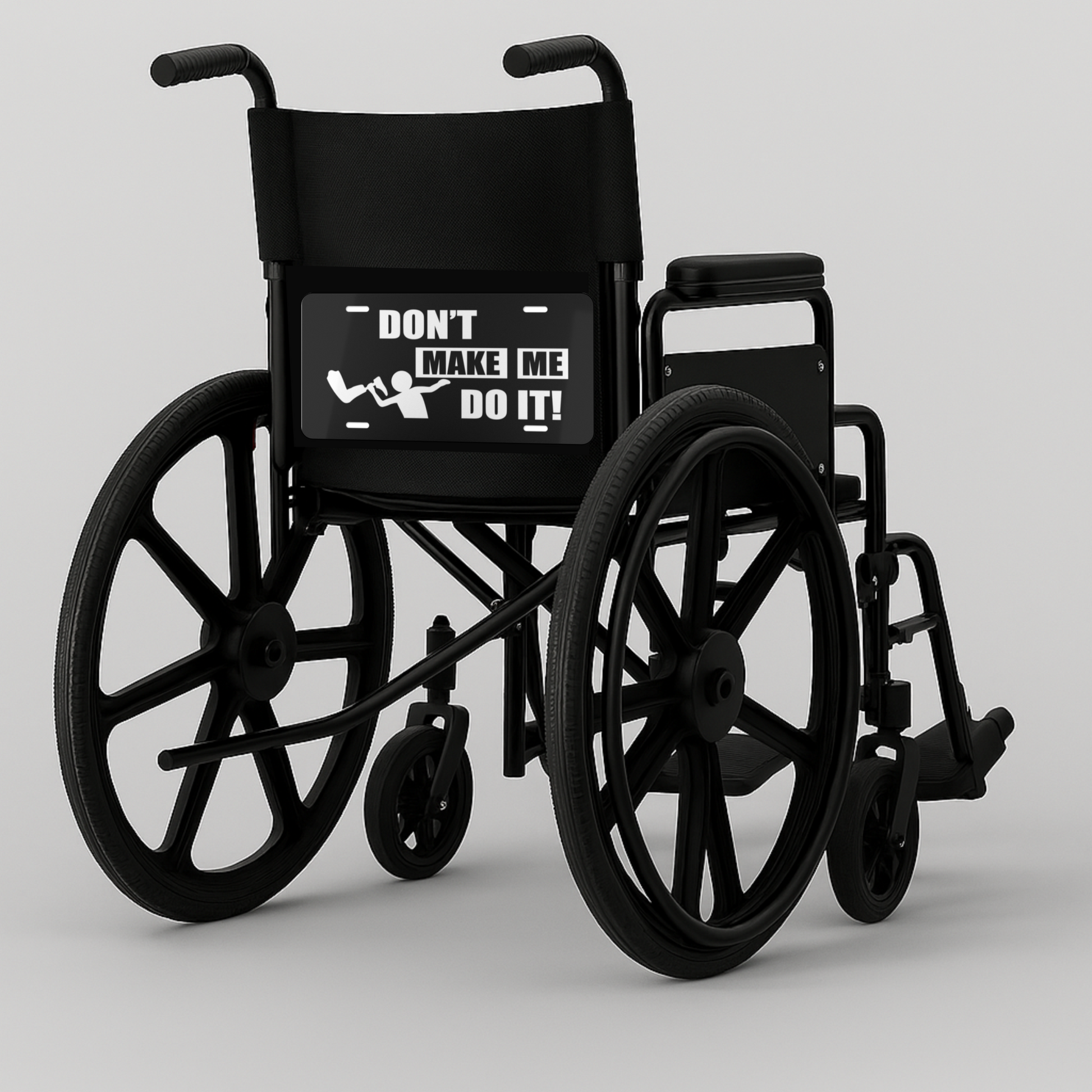 Funny Amputee Wheelchair License Plate – “Don't Make Me Do It” Prosthetic Humor