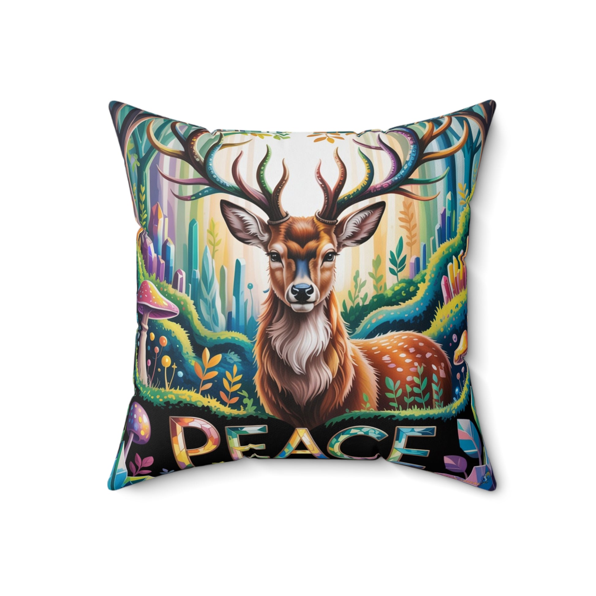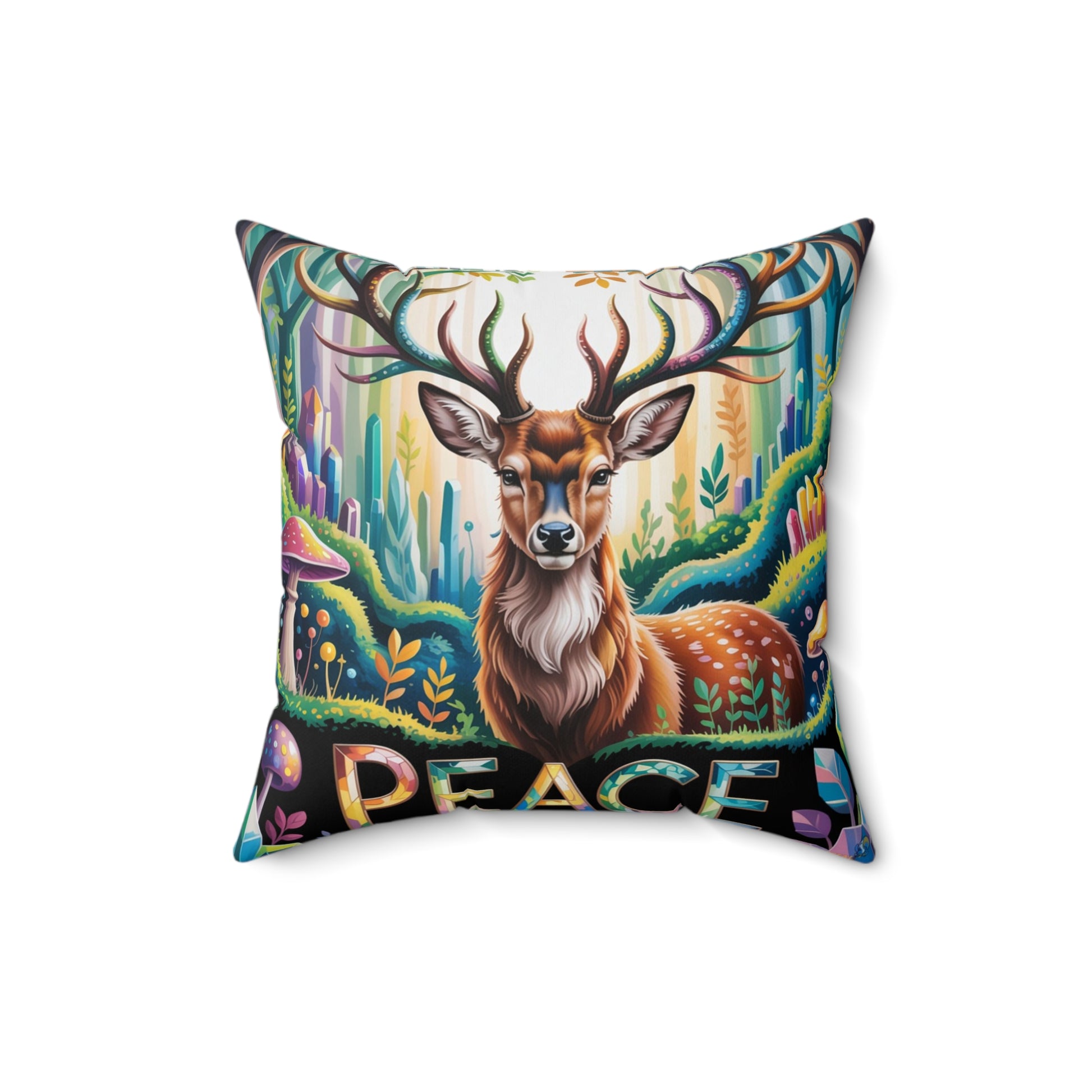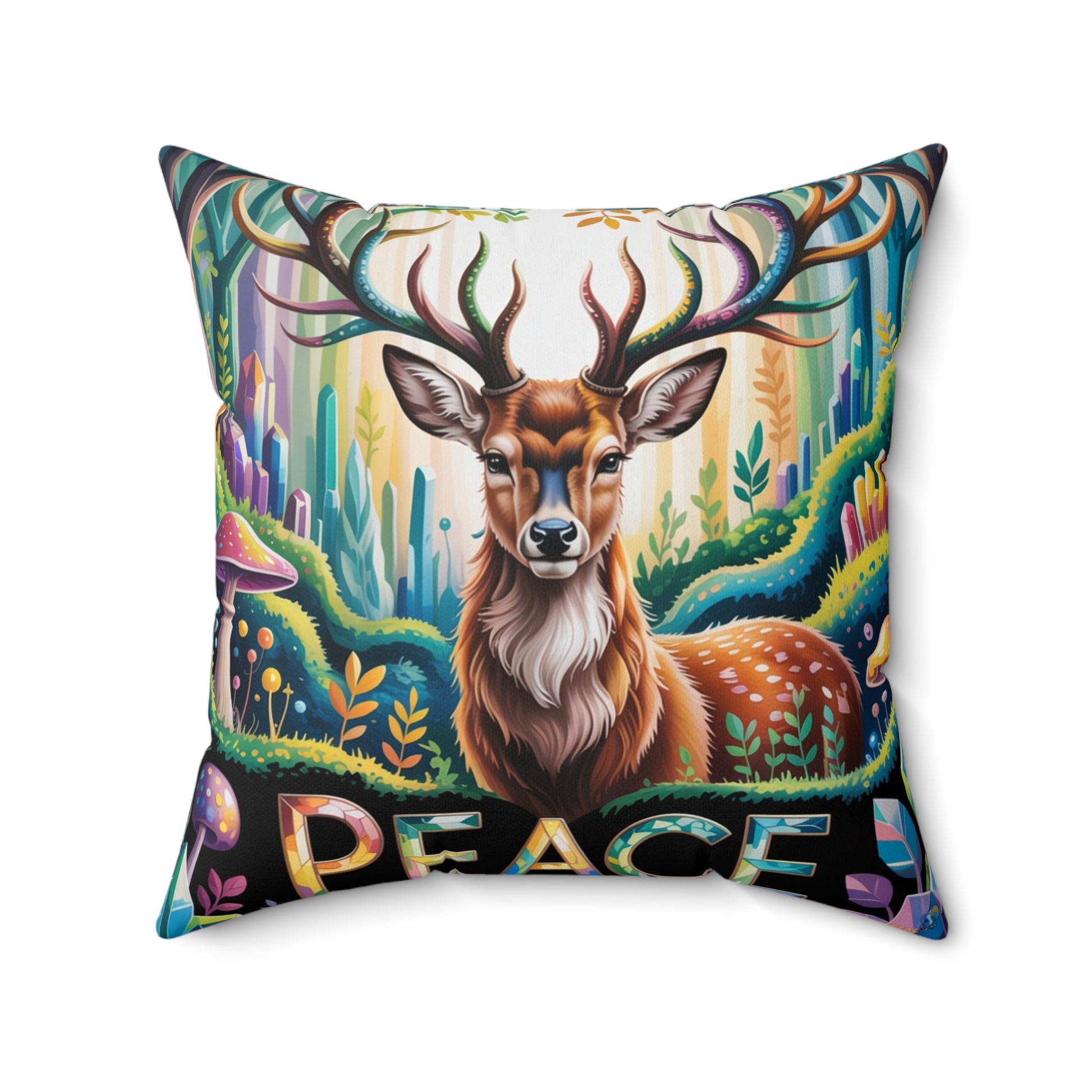 Inspirational Deer Throw Pillow – Stained Glass Mosaic Cushion | Loyalty & Spirit Decorative Pillow