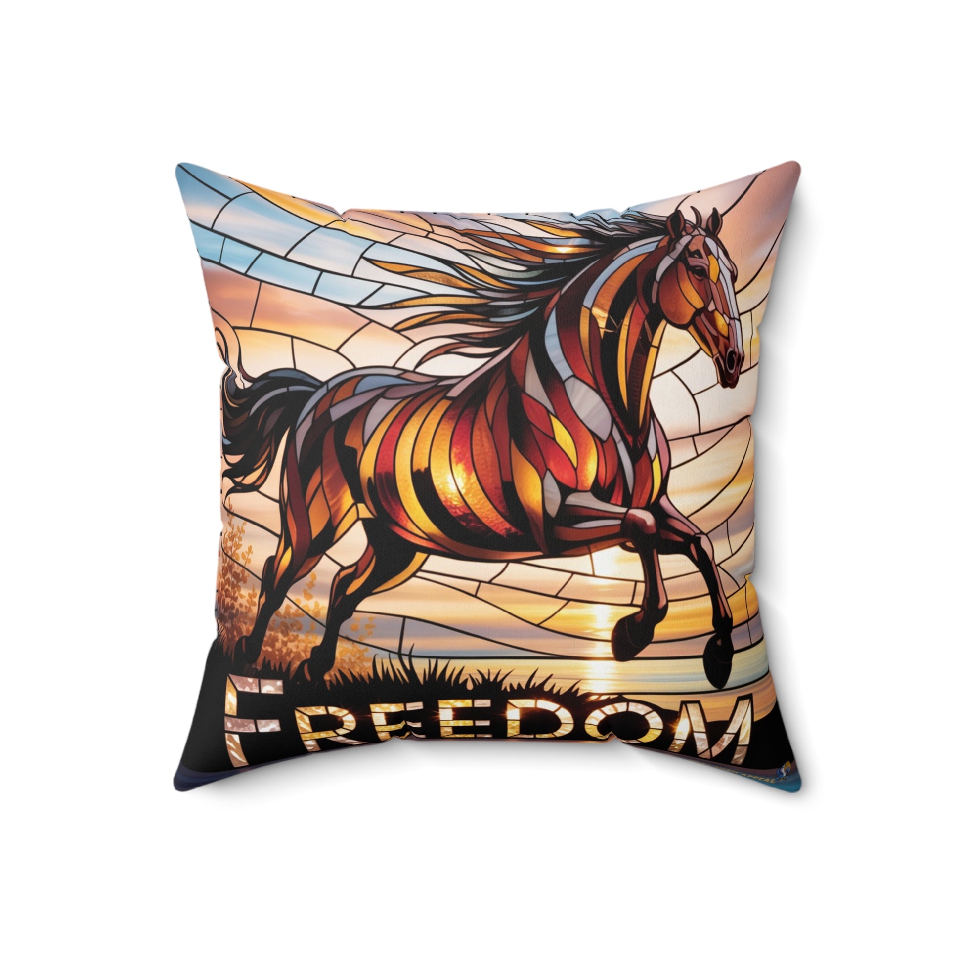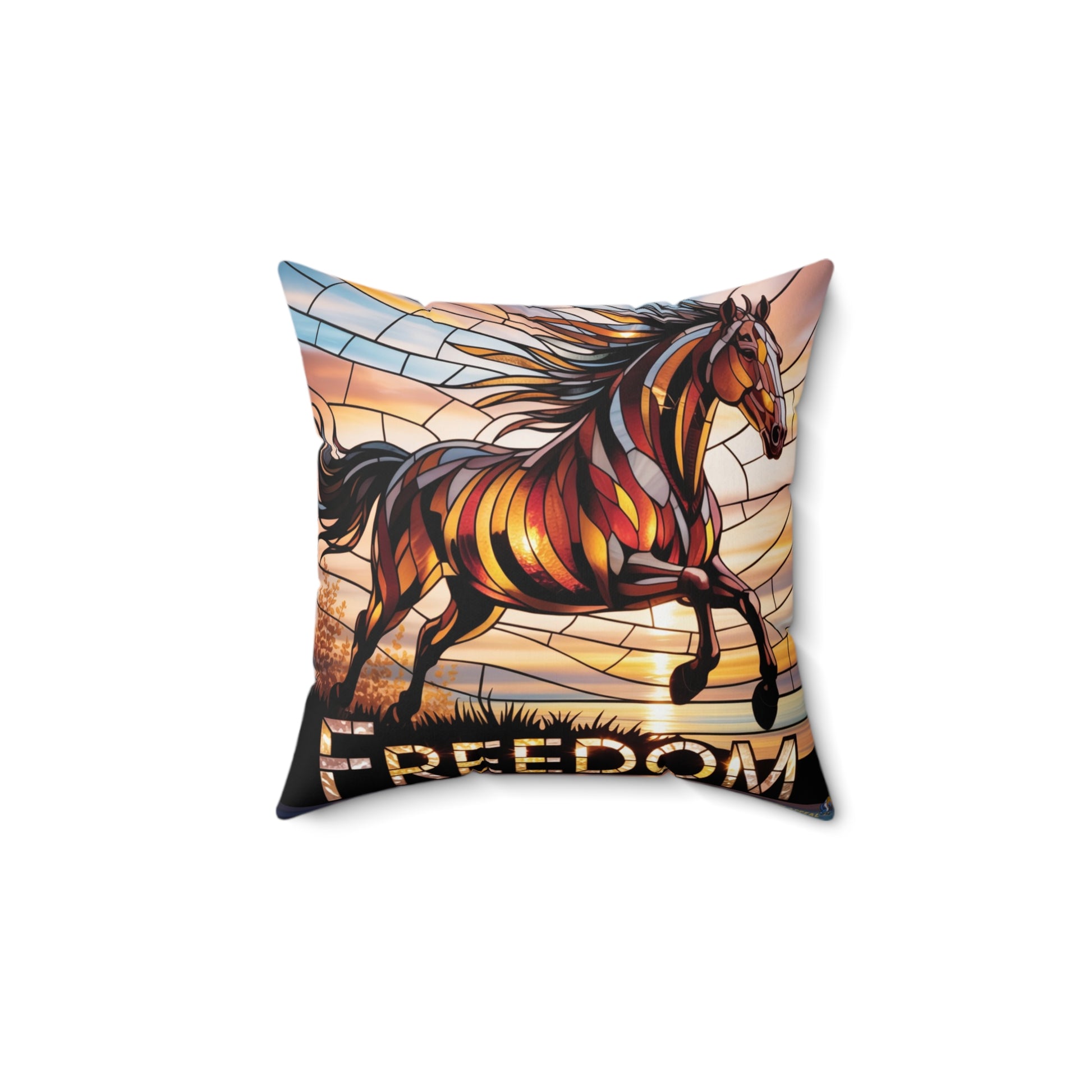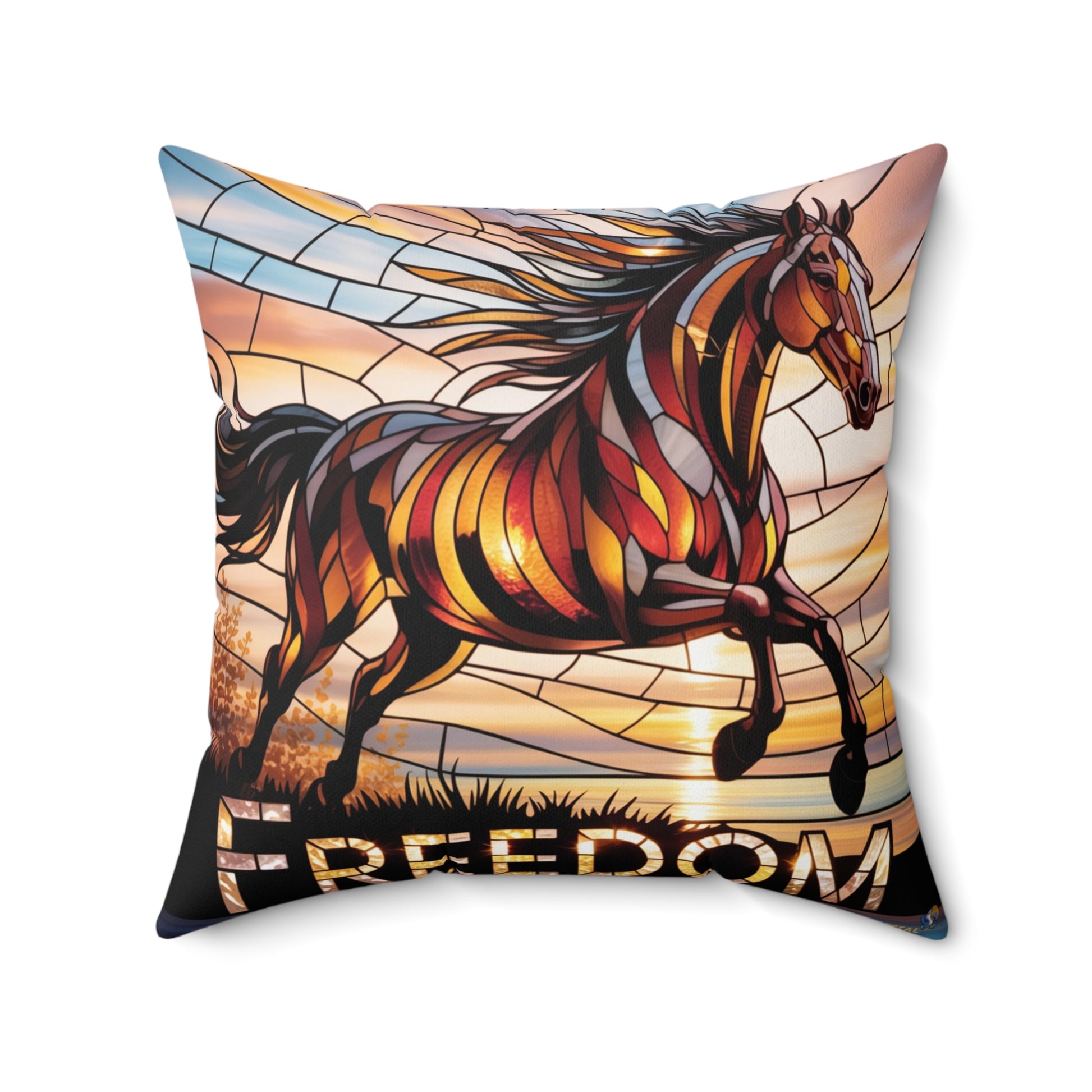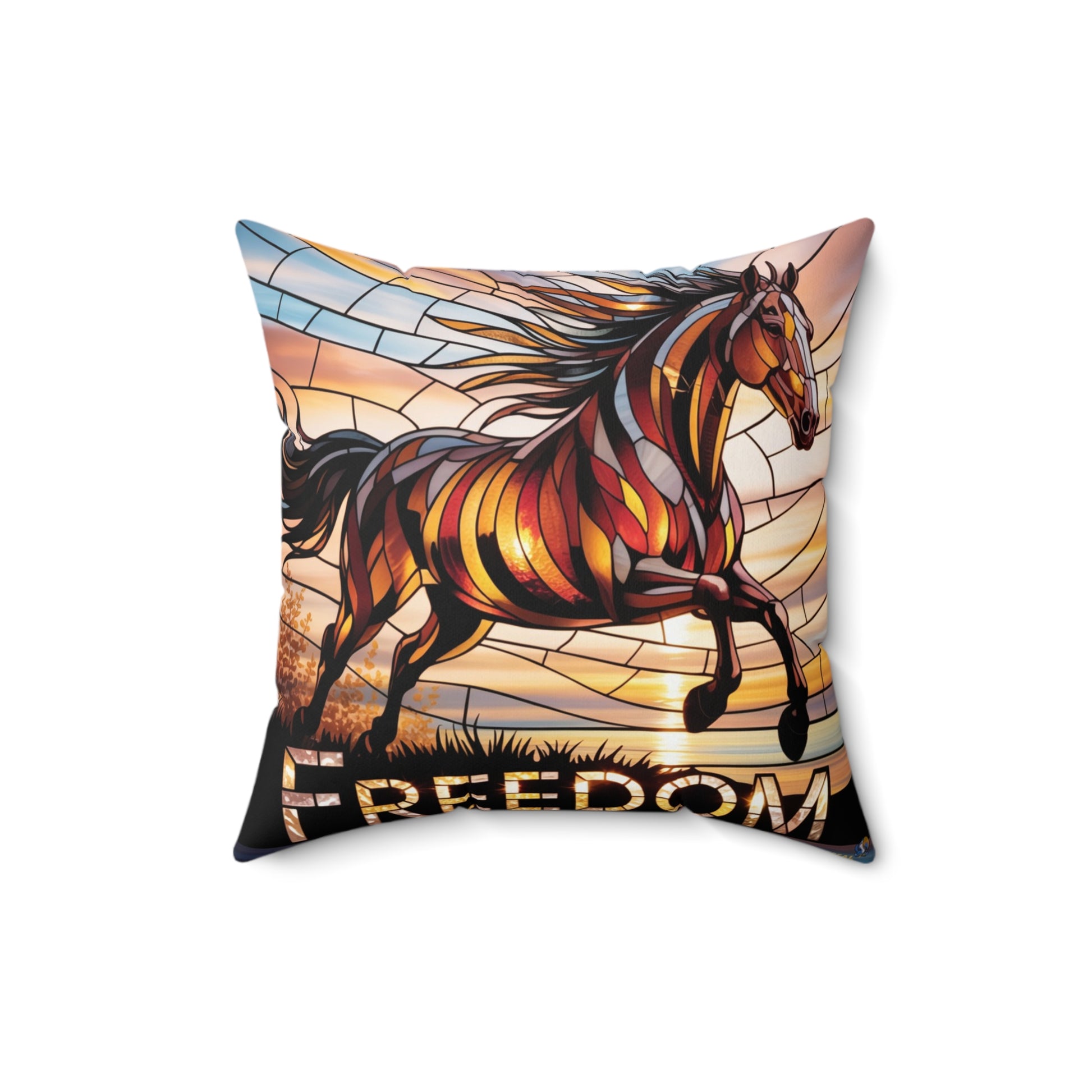 Inspirational Horse Throw Pillow – Stained Glass Mosaic Cushion | Endurance & Wisdom Decorative Decor