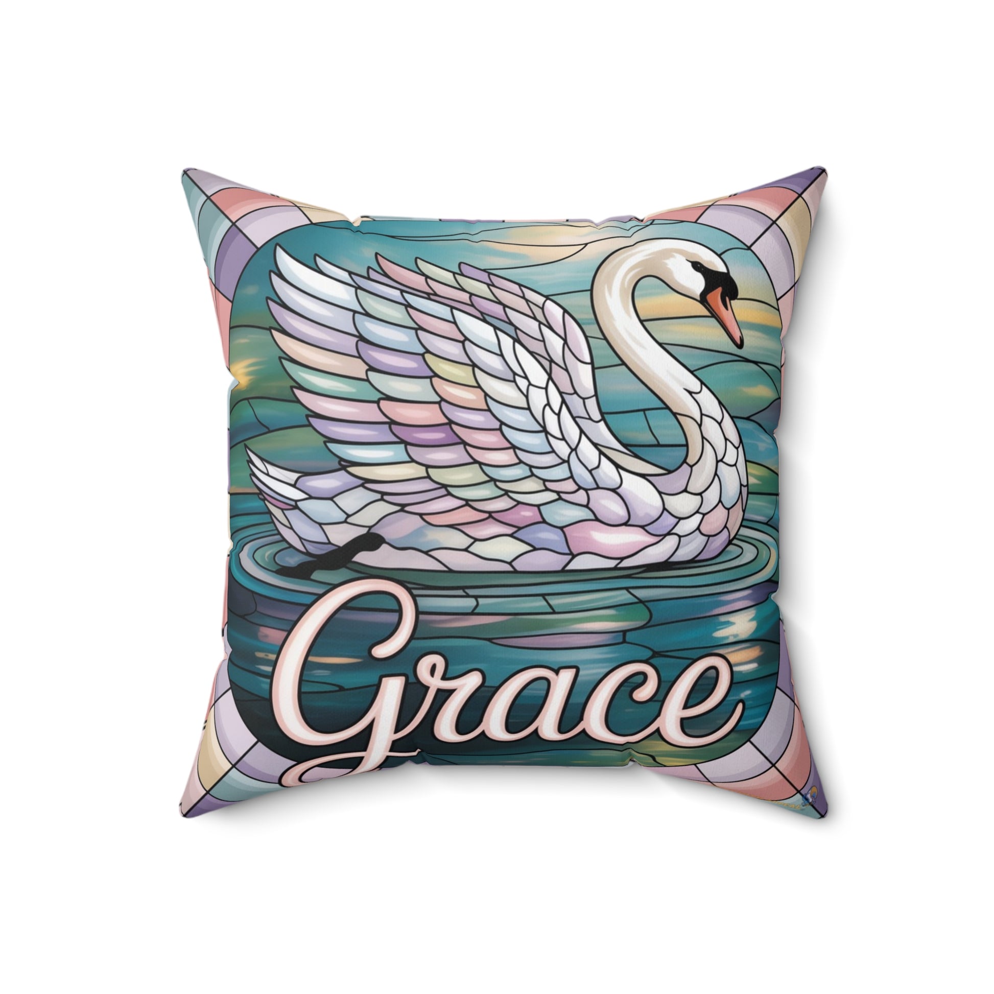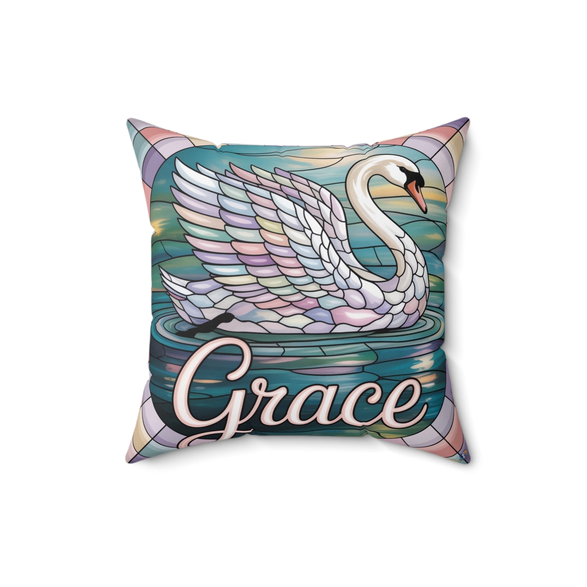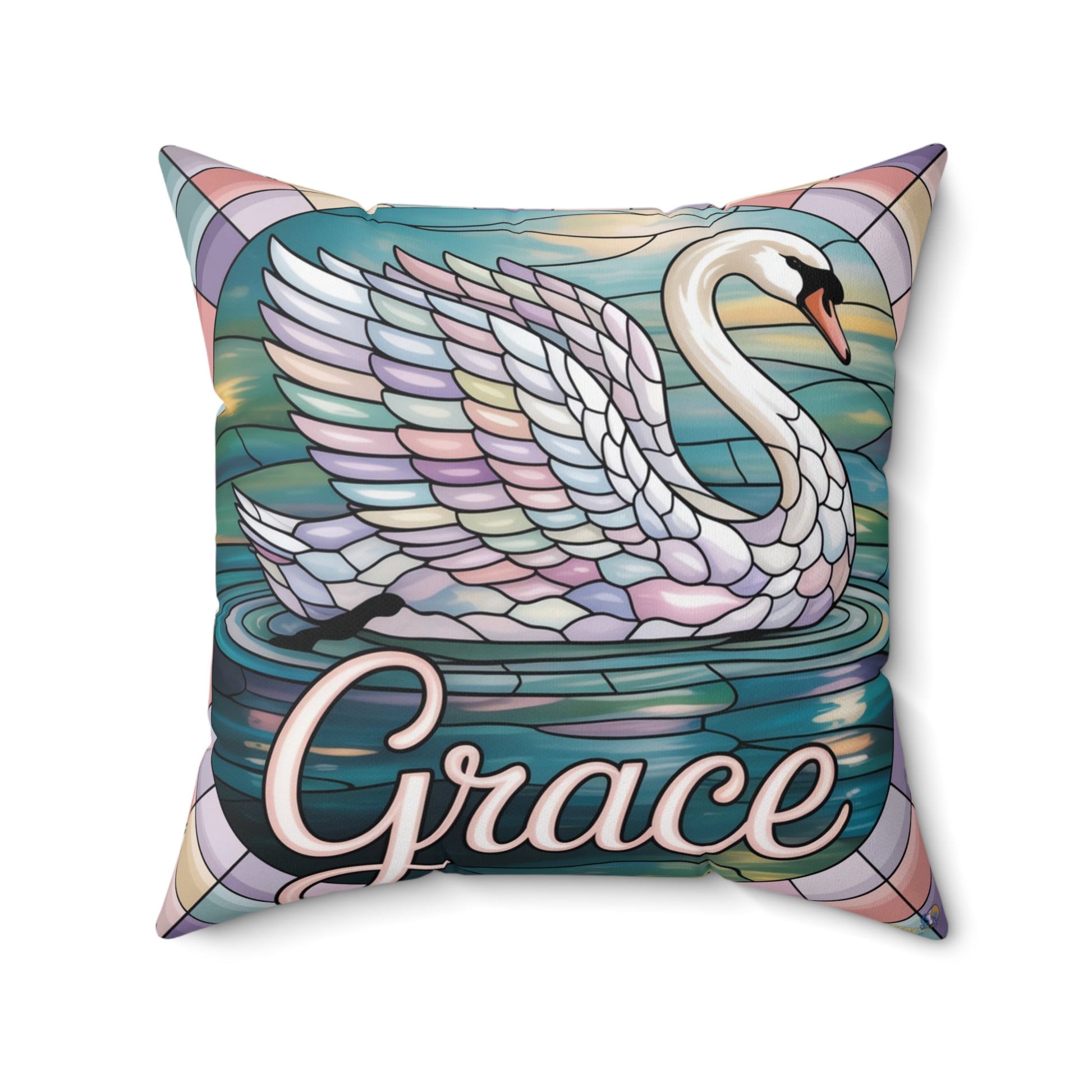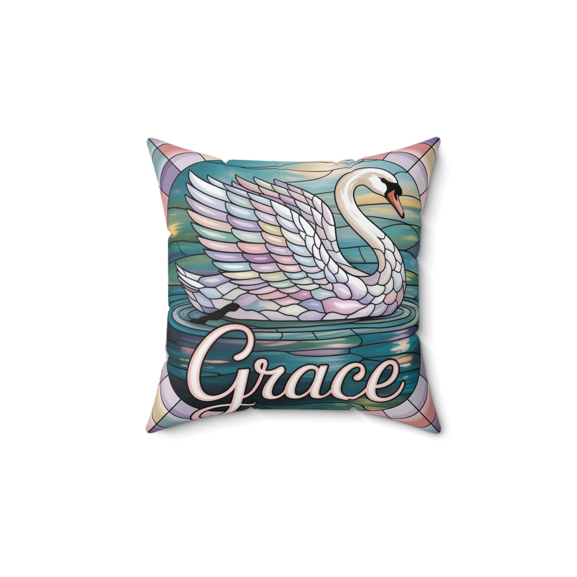 Inspirational Swan Throw Pillow – Stained Glass Mosaic Cushion | Grace & Beauty Decorative Accent